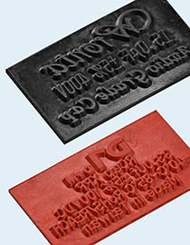 有理式公司之「橡膠成型」製程是採用CNC雕刻模版,再採用高品質的壓模成型,以顯微鏡做品管檢測,製造出優異的字模,進而在印字成效上達成極高的印刷品質。