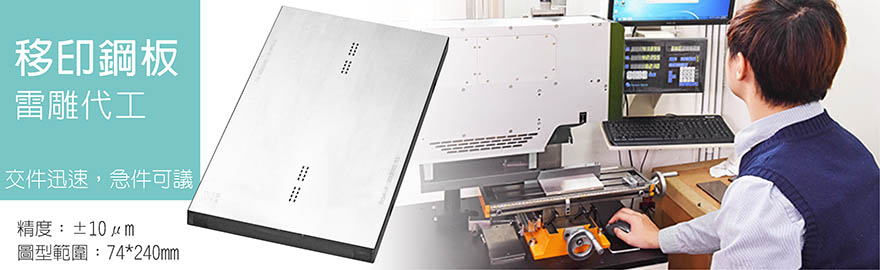 移印機鋼板雷雕代工 ,移印機鋼板蝕刻加工,MLCC 蓋印機,軟性PCB板貼合機.